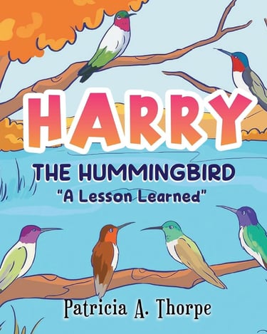 Of course I added to our front yard a Hummingbird feeder filled with sweet nectar. Of course Harry would come everyday to eat from the feeder filled with sweet nectar. After getting his fill of the nectar Harry would fly to the tallest branch of the tallest tree guarding his feeder. If any other bird would try to eat from the feed Harry would bombard the feeder and scare other birds away therefore not allowing other birds to eat from the sweet nectar feeder. This story tells how Harry learned to share.